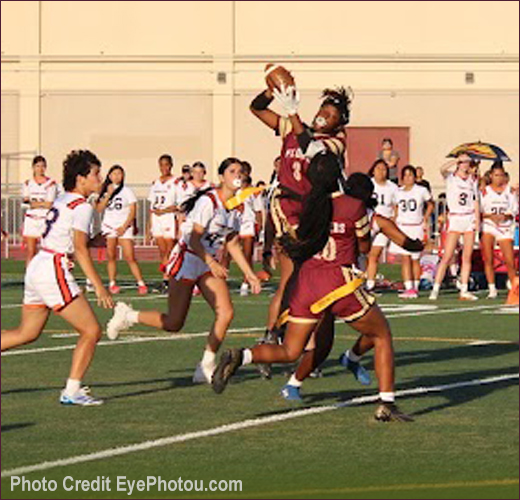 Moreover, the defense shut out the Titans with numerous pressures and sacks by Naomi Belcher, Veanna Flores and Ana Guzman. Lewis, playing linebacker, and Jazira Arteaga Khandilyan blitzed the Burbank quarterback all evening.