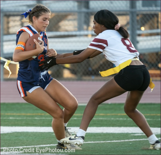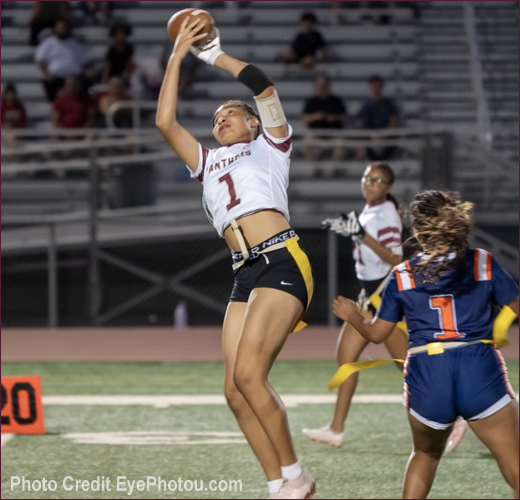 In girls flag football if the conversion is returned for a touchdown, the defending team is awarded two points. This is how Cosumnes Oaks beat the Panthers.