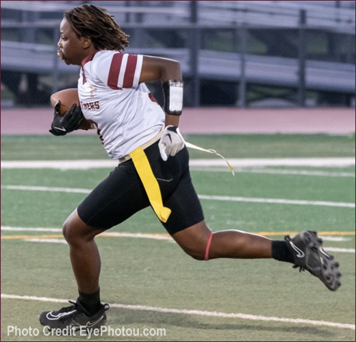With the Lady Panthers down 6-0, Florin went on a long drive that culminated in a Jayda Lewis 2 yard touchdown pass to Aneesa Perkins. Zavanna Payne and Janiya Brister had big catches on the scoring drive.