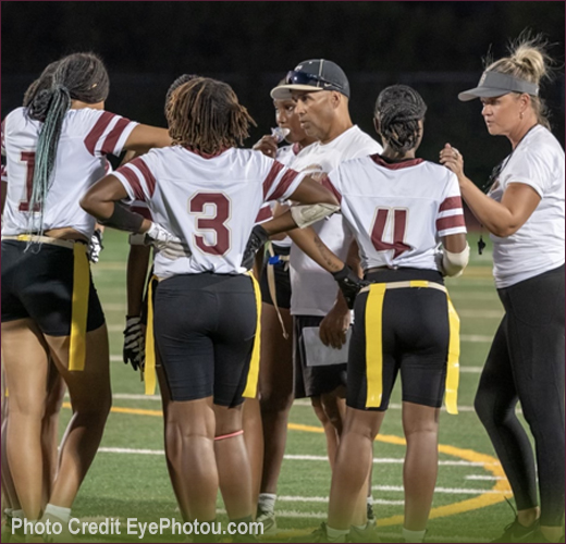 “As embarrassing as this game was, these types of games are easier to swallow than the tough losses like the Kennedy triple overtime, giving up a TD with 6 seconds left on the clock. We were never in this one”, Coach Mike Harris told Elite Blue Chip after the brutal loss to Fairfield. “It is disappointing because going into league, we believed the Fairfield series would determine the GSL (Greater Sacramento League)”, Coach Noelle Marquez added.