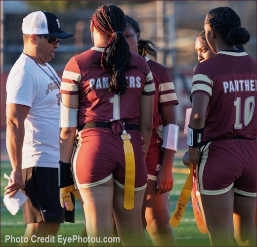 Other standout players on defense were Zavanna Payne who recorded 8 pulls, Jazira Arteaga Khandilyan with 4 solo pulls, Paris Jones with 3 flag pulls. Janiya Brister had two flag pulls and two outstanding touchdown saving pass deflections. Rhian Fitzgerald, Kamaeh Davis both had one flag pull each.