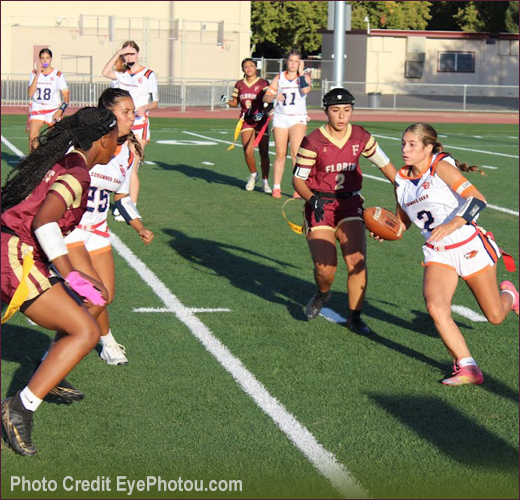 Moreover, the defense shut out the Titans with numerous pressures and sacks by Naomi Belcher, Veanna Flores and Ana Guzman. Lewis, playing linebacker, and Jazira Arteaga Khandilyan blitzed the Burbank quarterback all evening.