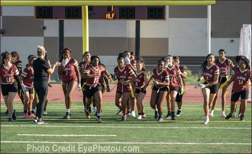 Paris Jones and Katelyn Chan both had game saving flag pulls one after the other. Jones and Chan led the team with 10 tackles a piece. Janiya Brister and Kat finished with 8 pulls. Aneesa Perkins, Erin Foster, Kimia Rhinehart and Hazel Her were all over the Herd, “All night long!”
